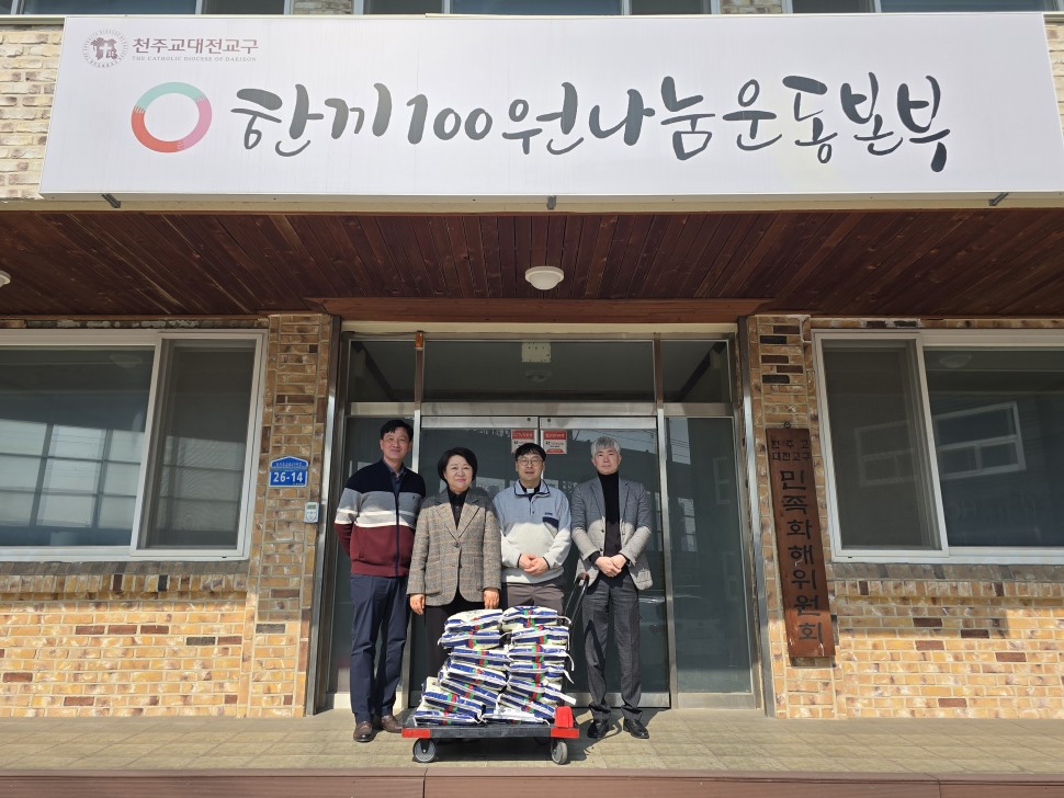 특별후원 받은 쌀 140kg은 지역 내의 무료 급식소인 '성모의 집'과 '문창동 효심정(빈첸시오의 집)'에 전달될 예정입니다.